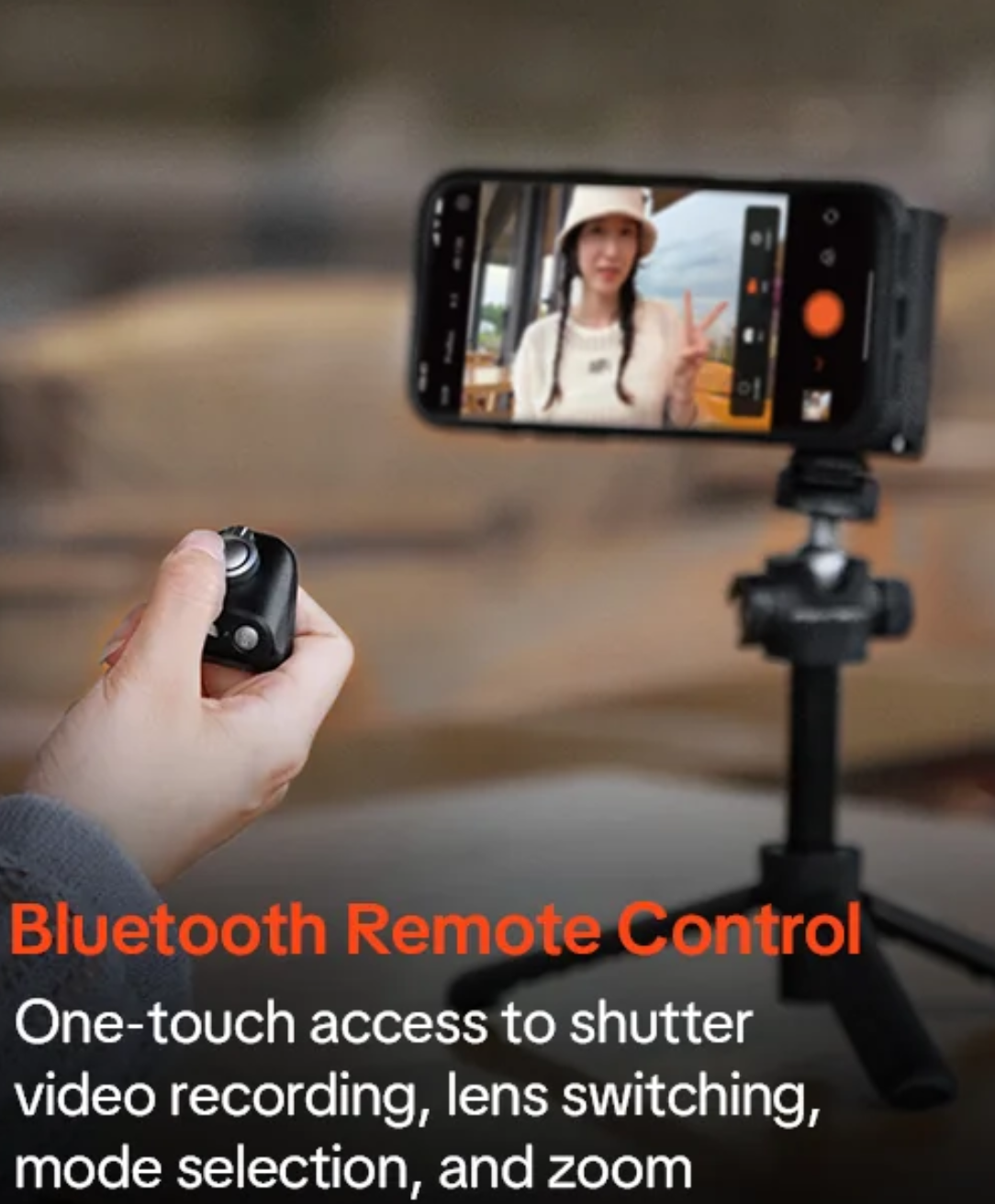 • Ergonomisk kameragreb: Giver din smartphone følelsen af et rigtigt spejlløst kamera for maksimal stabilitet og komfort under optagelser.